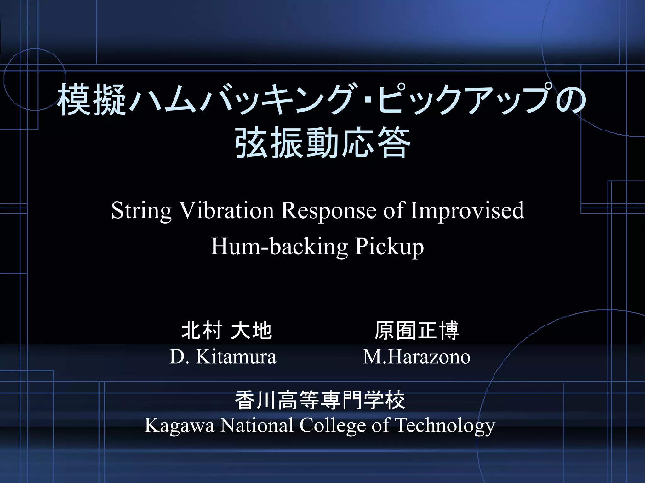 Presented at 電子情報通信学会大会 2011 (domestic conference) 北村大地, 原囿正博, "模擬ハムバッキング・ピックアップの弦振動応答," 電子情報通信学会大会講演論文集, vol.2011, A-10-6, p.170, Tokyo, March 2011.