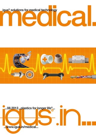 The document outlines igus® solutions for medical technology, focusing on lubrication-free and maintenance-free polymer products suitable for various medical applications such as bearings and cables. It highlights the extensive product range, customization options, and the capability to meet demanding standards, including FDA compliance. Additionally, igus® provides online tools and fast delivery services to enhance efficiency in the medical sector.