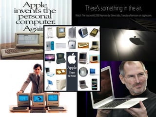 The document summarizes 7 shortcuts for managing change based on lessons from Steve Jobs and Apple. The shortcuts are: 1) Do what you love 2) Have a vision 3) Kick start your brain 4) Sell dreams not products 5) Say no to 1,000 things 6) Create great experiences 7) Master the message. Jobs emphasized passion, vision, creativity, simplicity, experiences, and visual storytelling to drive innovation and change at Apple.