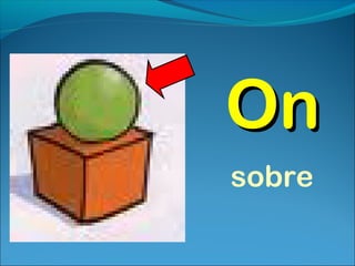 This document provides examples of using prepositions of place such as "on", "in", and "under" to form sentences. It introduces Mrs. Anabel Montes as an English teacher and gives the examples "The cat is under the table", "The vase is on the table", and "The flowers are in the vase" to demonstrate using these prepositions of place.