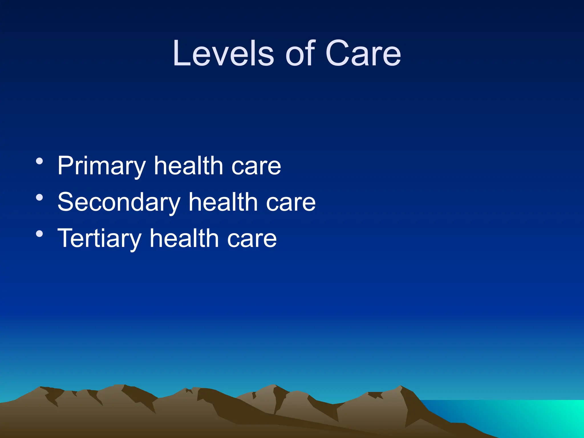 The document outlines the levels of health care: primary, secondary, and tertiary, with primary health care (PHC) as the foundational level focused on accessible and essential health services tailored to community needs. It emphasizes the principles of PHC established by the Alma-Ata Declaration in 1978, advocating for social equity, community participation, and inter-sectoral collaboration to address local health problems. Core activities include health education, nutrition, sanitation, maternal and child care, and preventive measures, all aimed at building sustainable health systems for disadvantaged populations.