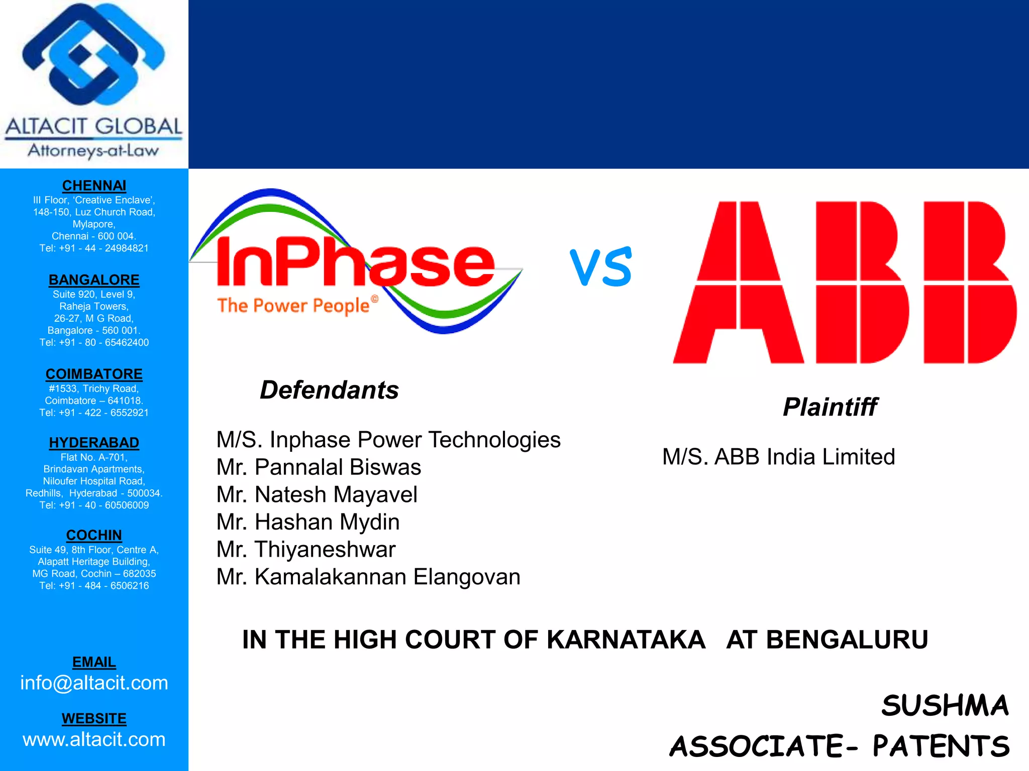 This document summarizes a legal case filed by Plaintiff M/s. Inphase Power Technologies against former employees who have now started their own competing business. The Plaintiff alleges that the Defendants have infringed on their patent for STATCOM devices and misappropriated trade secrets and confidential information obtained during their employment. The Plaintiff is seeking injunctions and damages. The Defendants deny the allegations and claim their product contains significant differences from the Plaintiff's.