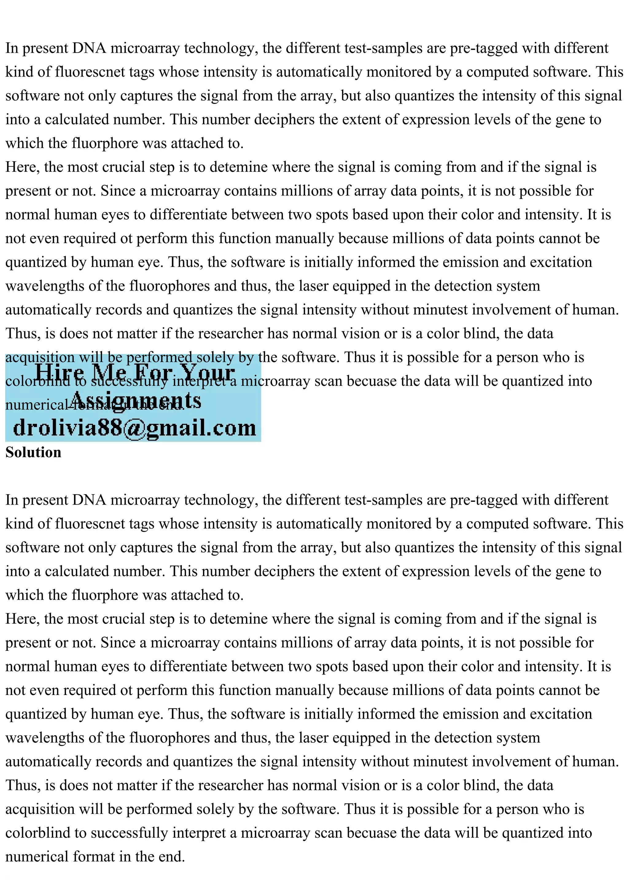DNA microarray technology utilizes pre-tagged fluorescent samples whose intensity is monitored by specialized software. This software captures and quantifies the signal intensity, allowing the assessment of gene expression levels regardless of human visual capabilities. As a result, individuals, including those who are colorblind, can effectively interpret microarray data, which is presented in numerical format.