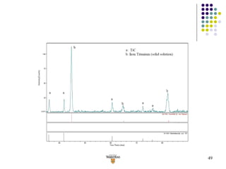 The document summarizes research on using laser cladding to produce an in-situ TiC-Fe composite coating on mild steel. Key findings include: