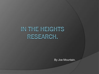 In the Heights tells the story of the residents of Washington Heights, a Latino neighborhood in New York City. The musical follows Usnavi, the owner of a bodega, and other community members over the course of three days. Each character dreams of a better life outside of Washington Heights. When Abuela Claudia is revealed to have won the lottery, it gives the community hope for an escape from their struggles. However, tragedy strikes and the characters must decide whether to pursue their dreams or remain in the community that raised them.