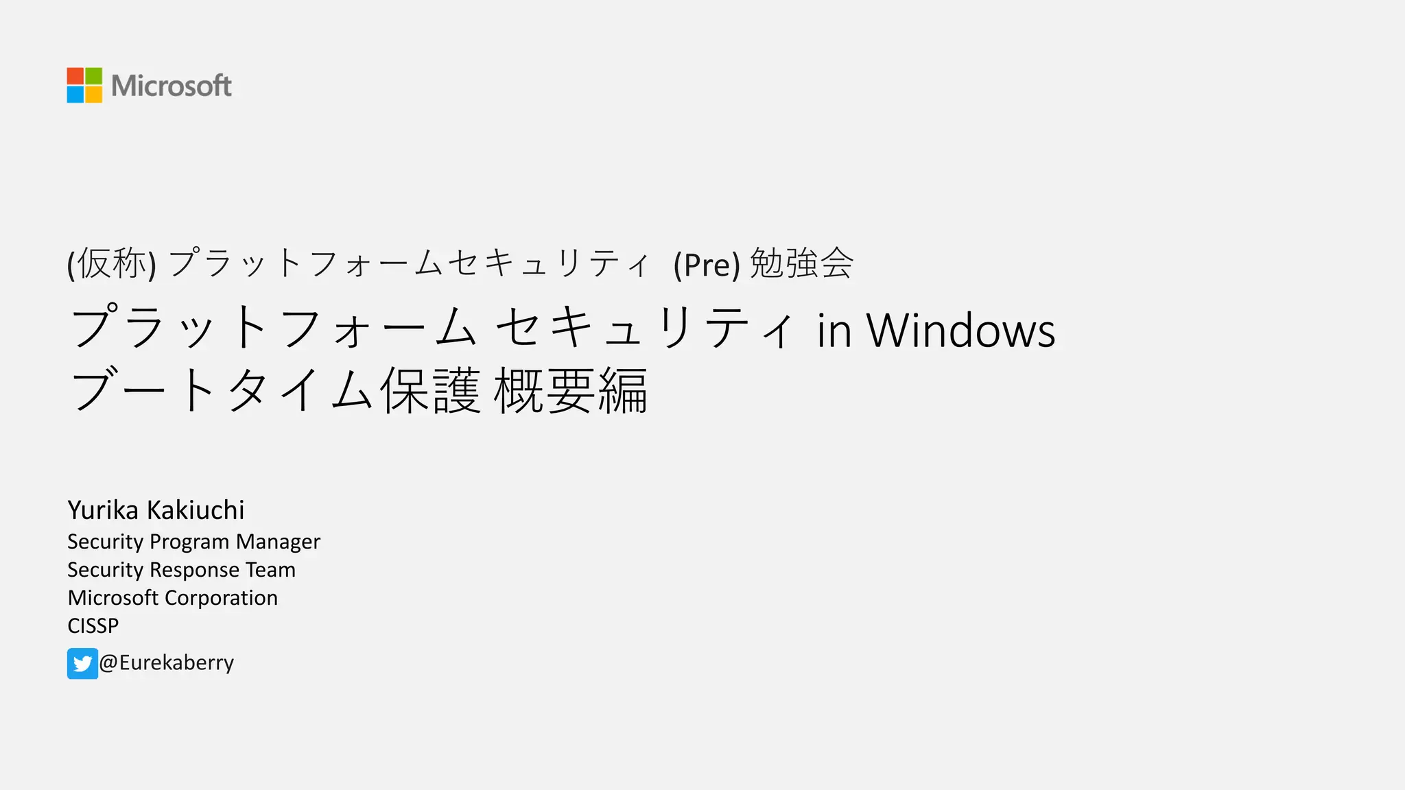 Windows ブートタイム保護 概要編 Yurika Kakiuchi Security Program Manager Security Response Team Microsoft Corporation CISSP @Eurekaberry