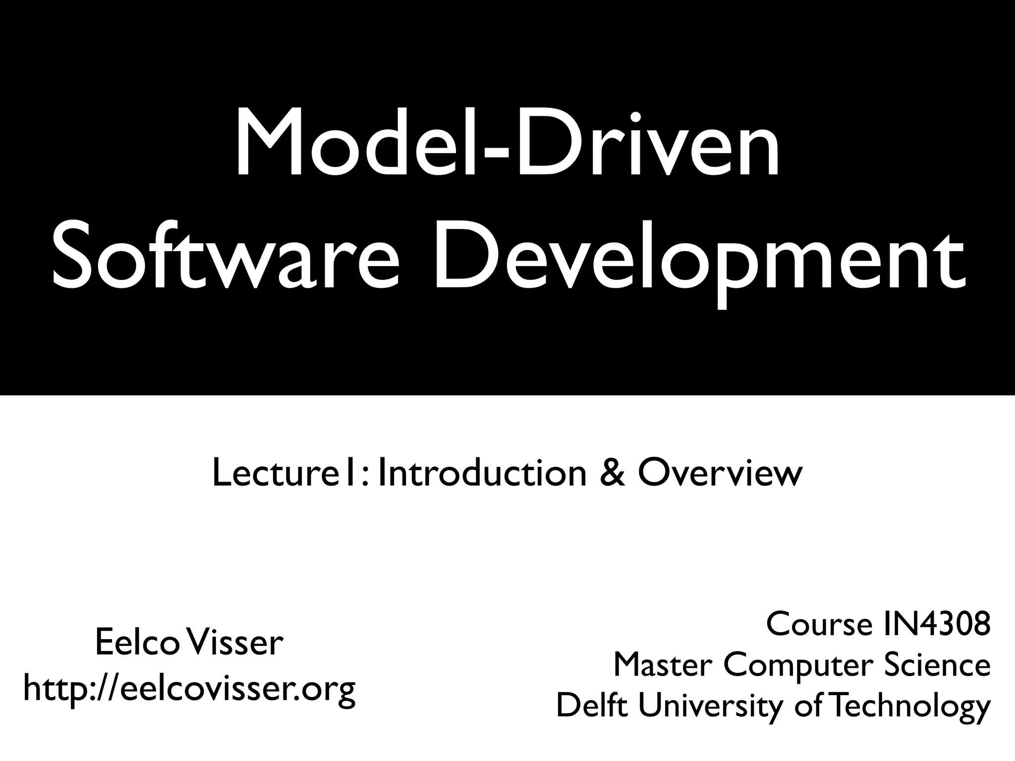 The document discusses an introductory course on model-driven software development, covering topics such as programming languages, machine language, and domain-specific languages (DSLs). It outlines the concept of models as simplifications of systems and emphasizes the importance of abstraction in programming. The course aims to teach students about the design and implementation of DSLs through lectures, projects, and essays.