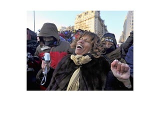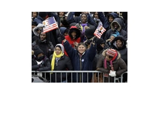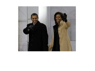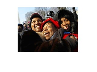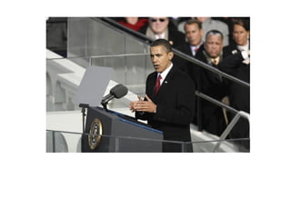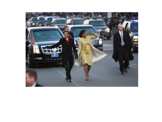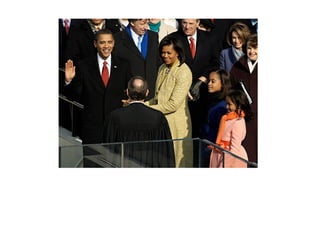 The document summarizes events surrounding Barack Obama's inauguration as the 44th President of the United States, including his whistle-stop train ride from Philadelphia to Washington D.C., a concert at the Lincoln Memorial attended by the Obamas and Bidens, Obama's swearing-in ceremony at the U.S. Capitol witnessed by nearly 2 million people, his inaugural address, and inaugural balls celebrated across Washington D.C.