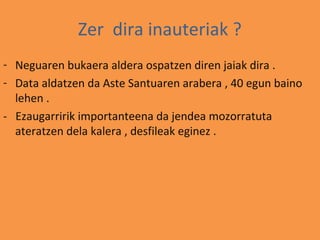 - Data aldatzen da Aste Santuaren arabera , 40 egun baino