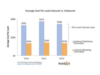 The document outlines how to create an effective marketing strategy focusing on both inbound and outbound marketing approaches. It emphasizes defining buyer personas and understanding the buyer's journey to attract, convert, and nurture leads into customers. Key strategies include content generation, social media sharing, lead nurturing tactics, and measuring ROI across various marketing channels.