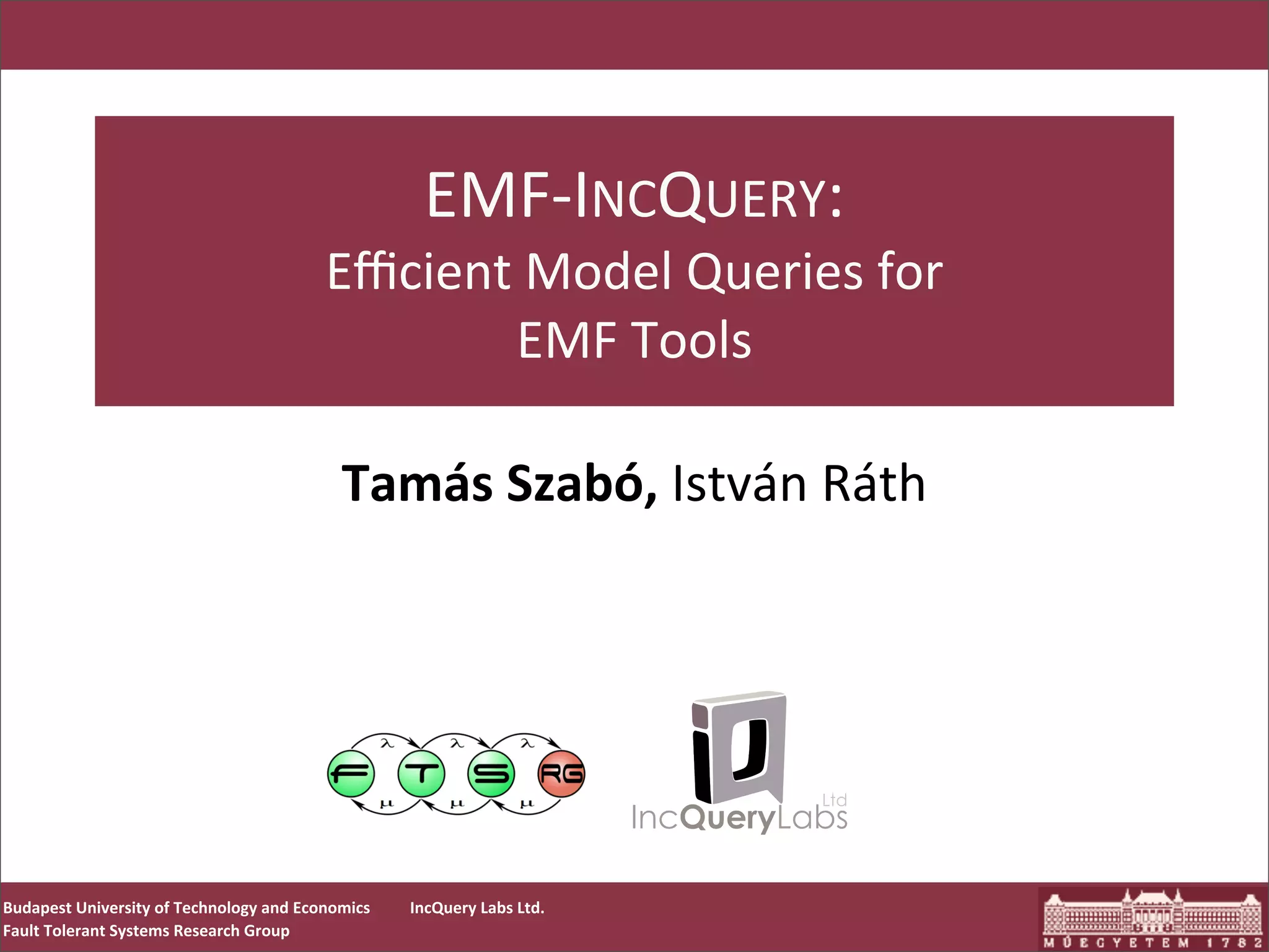 The document introduces EMF-INCQUERY, a model query engine for Eclipse Modeling Framework (EMF) models. It provides an expressive graph pattern query language and incremental query evaluation based on the Rete algorithm. This enables efficient complex queries over large models. EMF-INCQUERY addresses performance issues of model queries in modeling tools and simplifies writing complex queries through reusable query libraries and pattern composition. It integrates with EMF-based applications and provides features like on-the-fly validation and view maintenance.