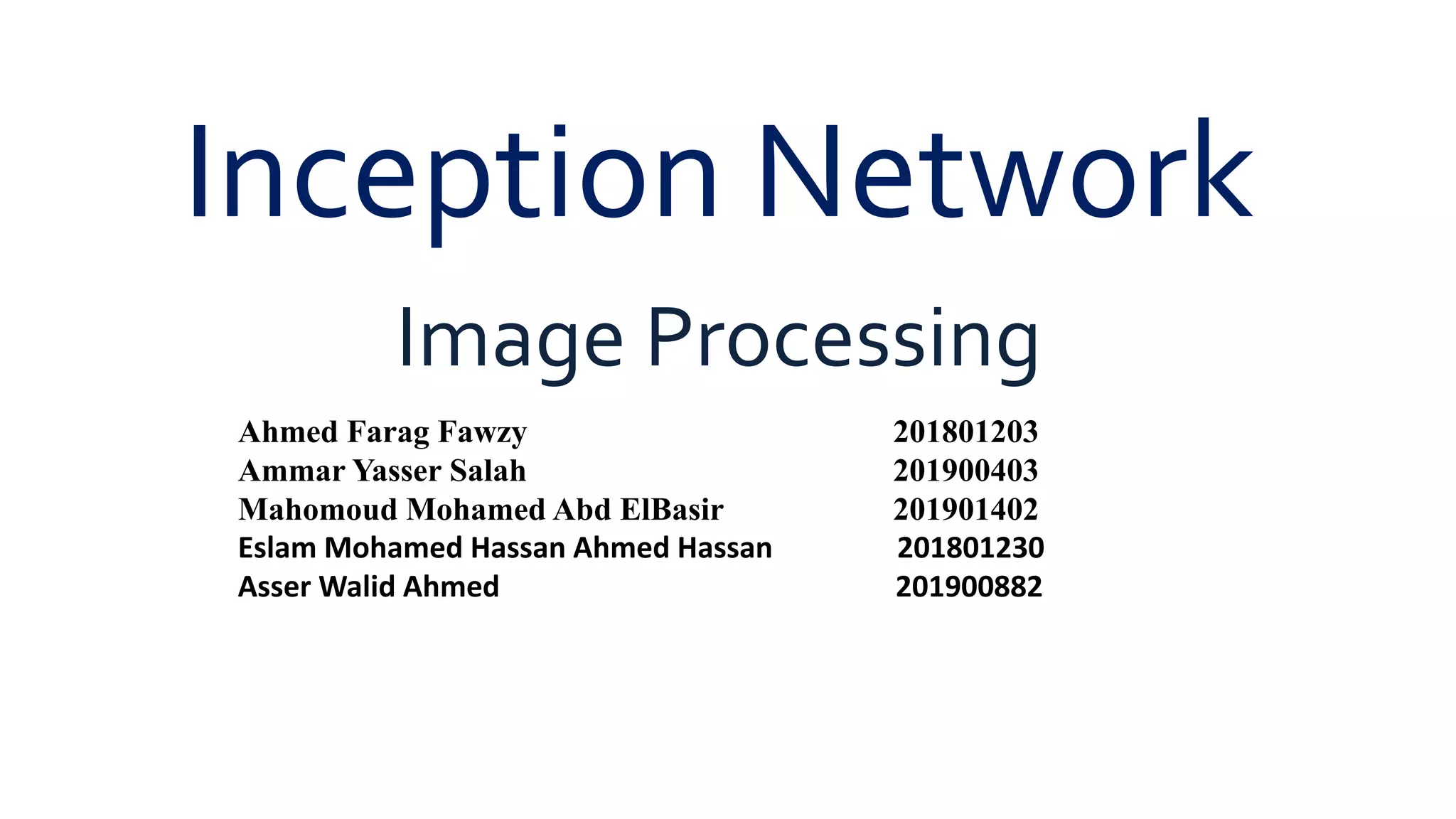 The document discusses the Inception v3 model, which was developed by Google to improve image classification accuracy while minimizing computational resources. Some key points: