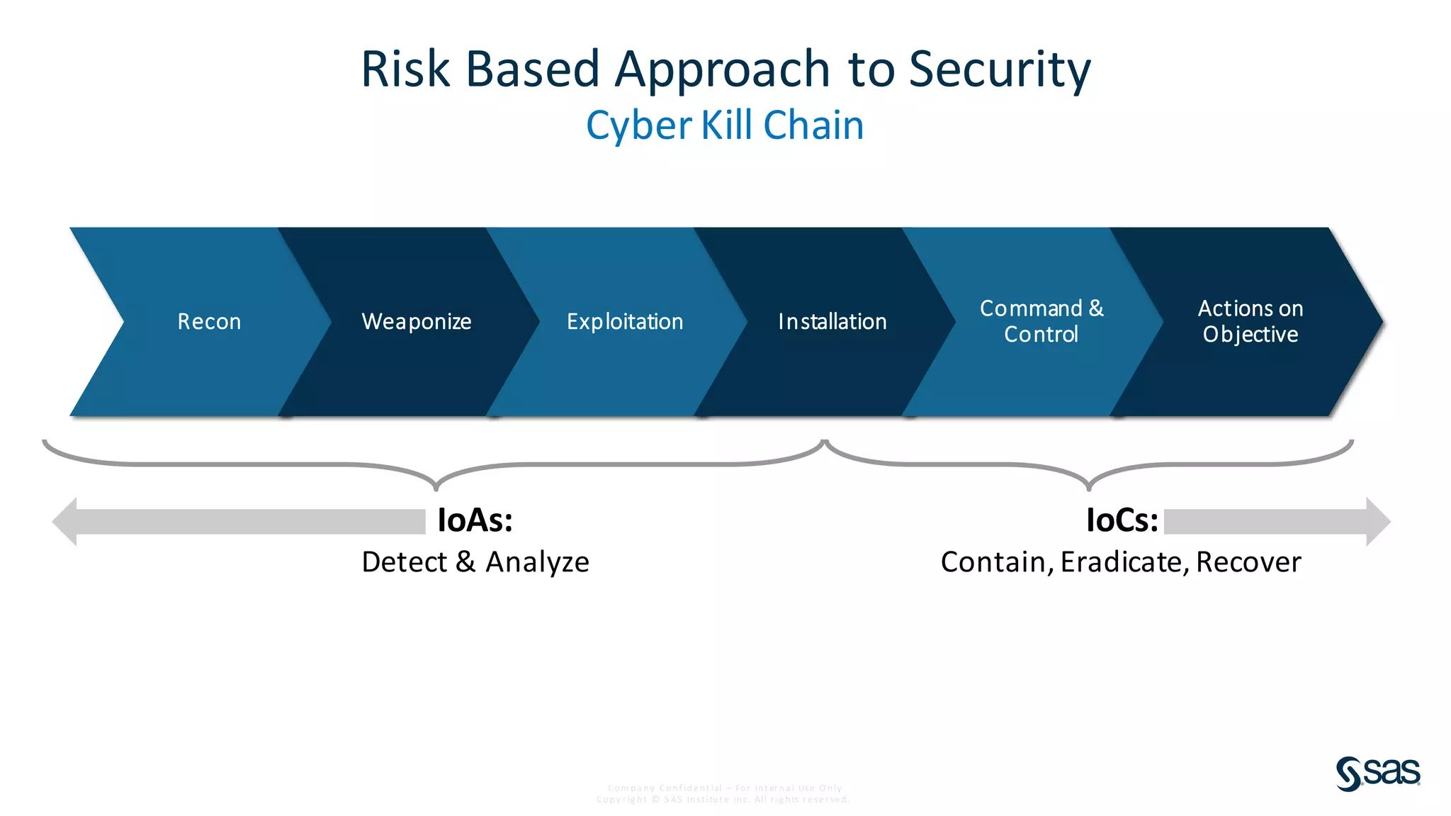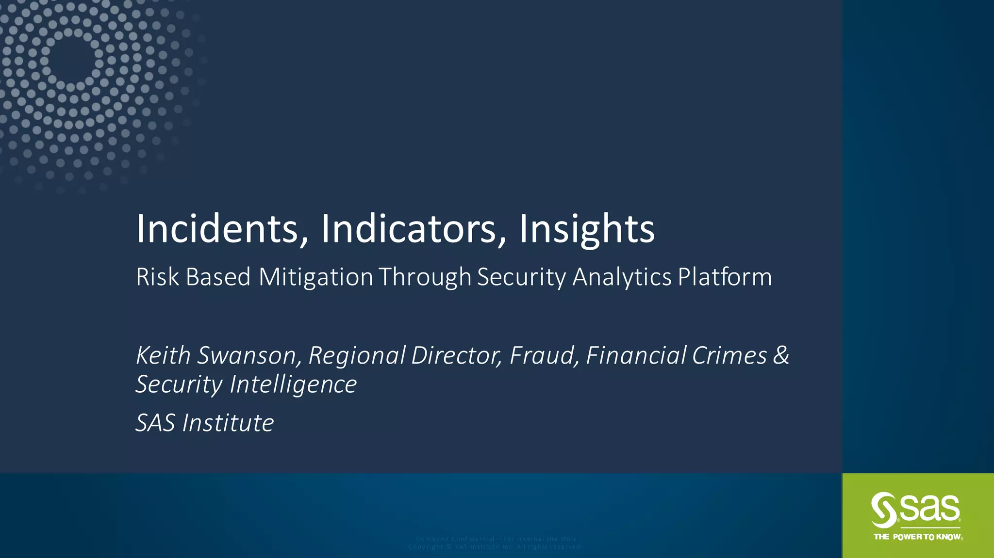 The document discusses implementing a security analytics platform to enable a proactive, risk-based approach to cybersecurity. It notes challenges with current point solutions that make holistic risk management difficult. The presentation argues that a unified analytics platform is needed to integrate data from multiple security tools and facilitate deeper insights through techniques like threat hunting. It presents SAS Institute's security analytics platform as a solution to transition organizations from reactive to proactive security management through multi-dimensional, data-driven insights.