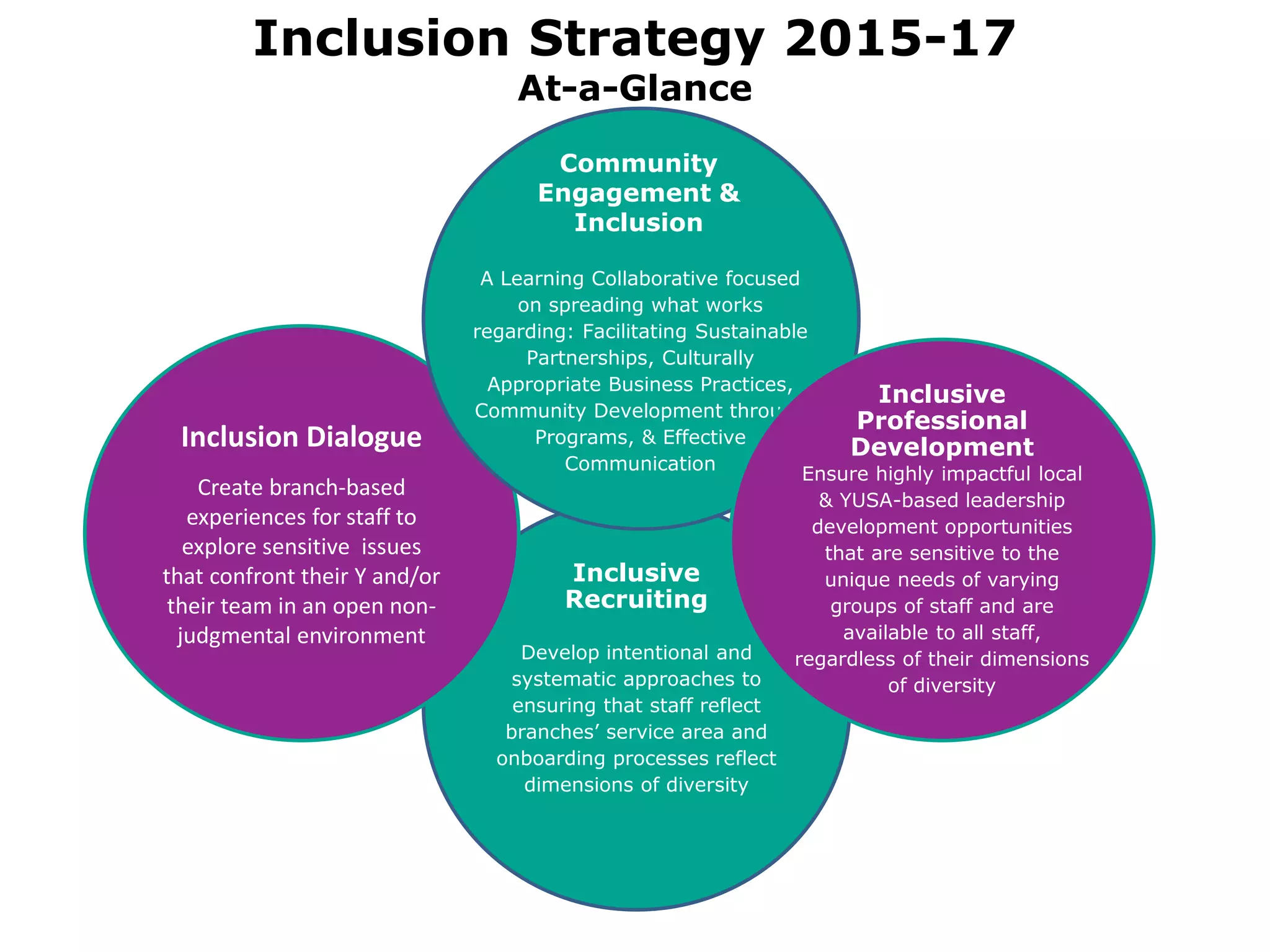 This document outlines an inclusion strategy with four key initiatives: