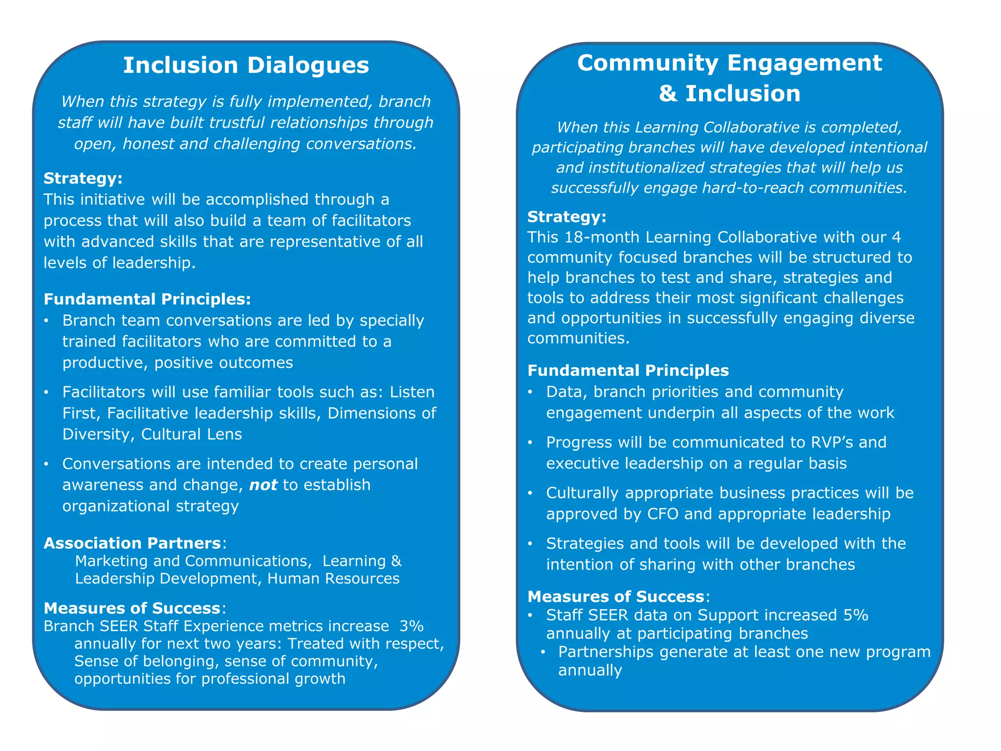 2. Inclusion dialogues to facilitate open discussions among staff about diversity issues.