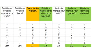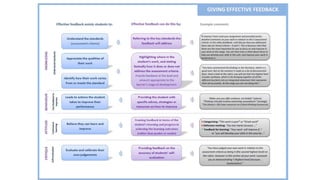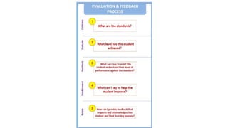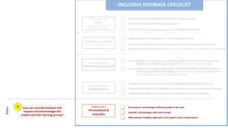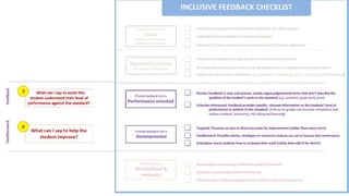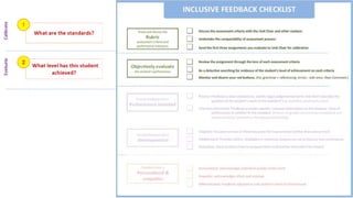 This document outlines an inclusive feedback project at HEPP ICCB that aims to improve feedback practices. It involved researching feedback assumptions and student perspectives on feedback purposes. An inclusive feedback model was developed and piloted with audio and video feedback in selected units. Staff and student feedback was positive about the benefits of alternative feedback formats in providing clarity and focus. Next steps include enhancing rubrics, developing a community of practice around feedback design, improving assessment alignment, and increasing student autonomy through self and peer feedback practices. The goal is to help students better self-monitor and regulate learning independently through feedback.