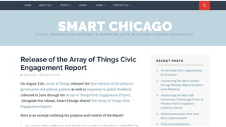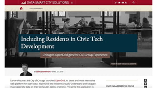 The Smart Chicago Collaborative is dedicated to enhancing Chicago's quality of life through technology, focusing on internet access, digital skills, and data since its founding in 2011. A key initiative involved the Array of Things civic engagement project, which sought resident input on sensor technology and privacy policies through public meetings and feedback collection. The document highlights the importance of effective communication and transparency in engaging communities for smart city development.