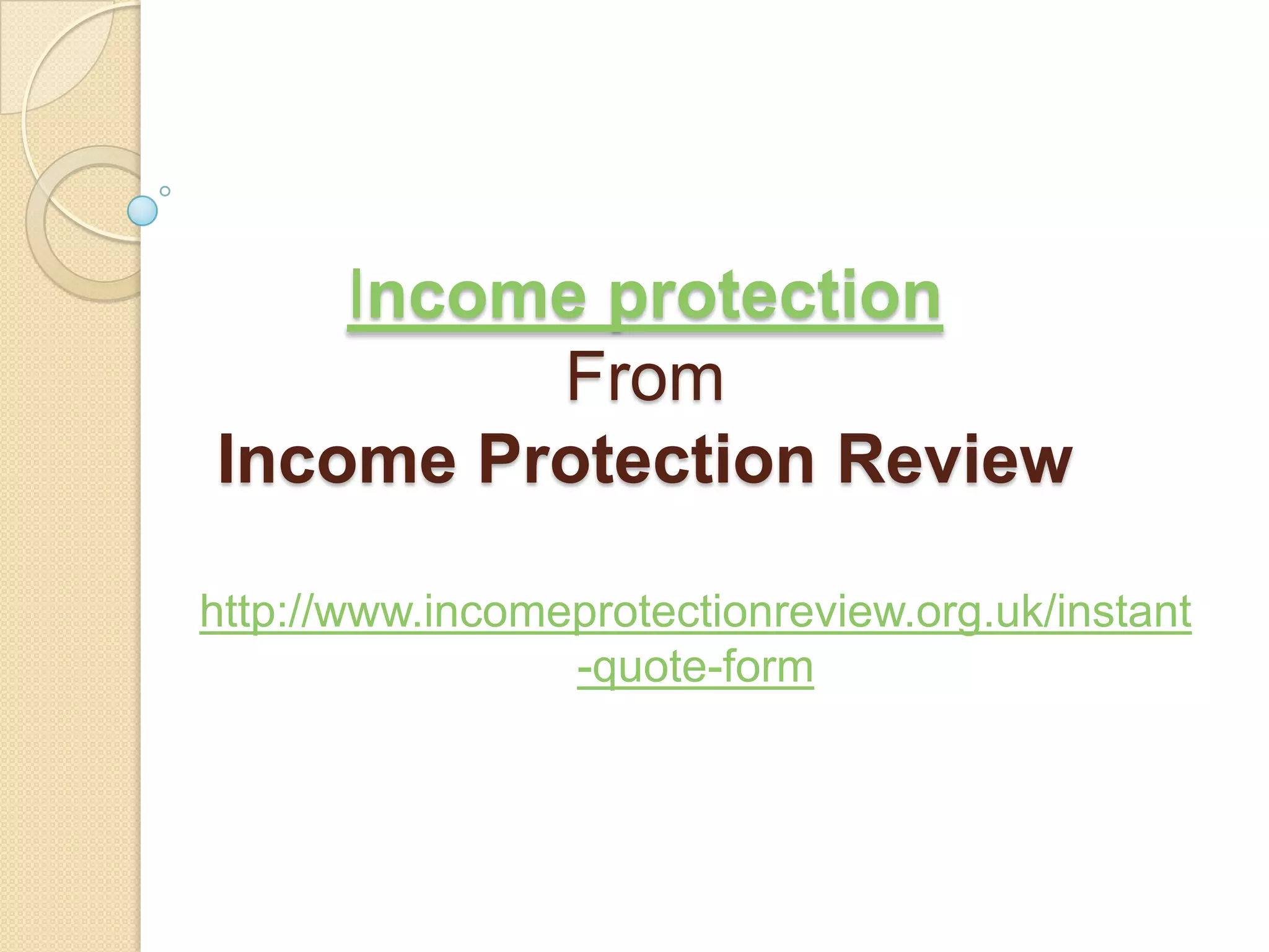 This document provides information about different types of income protection insurance, including income protection insurance, mortgage payment insurance, permanent health insurance, redundancy insurance, and life & critical illness insurance. It also provides contact information for the Income Protection Review, including a telephone number, email address, and mailing address in Bristol, UK.