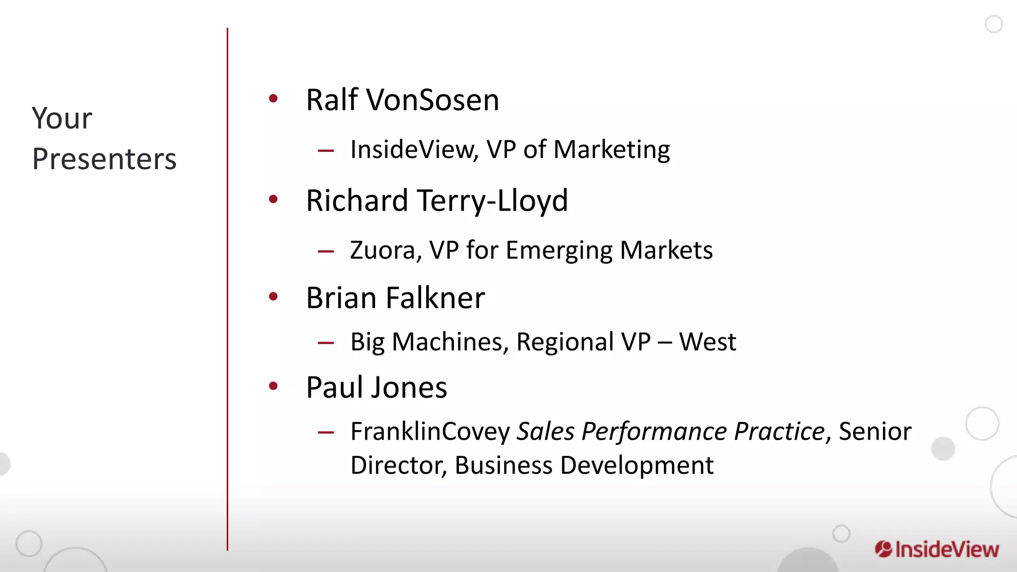 This document outlines an agenda for a presentation on building a sales intelligence culture to increase lead quality and conversion. The agenda includes sections on prospecting and finding the right person, converting leads with the right message at the right time, and making sales intelligence part of the organizational culture. Presenters from InsideView, Zuora, Big Machines, and FranklinCovey will discuss these topics, followed by a question and answer session.