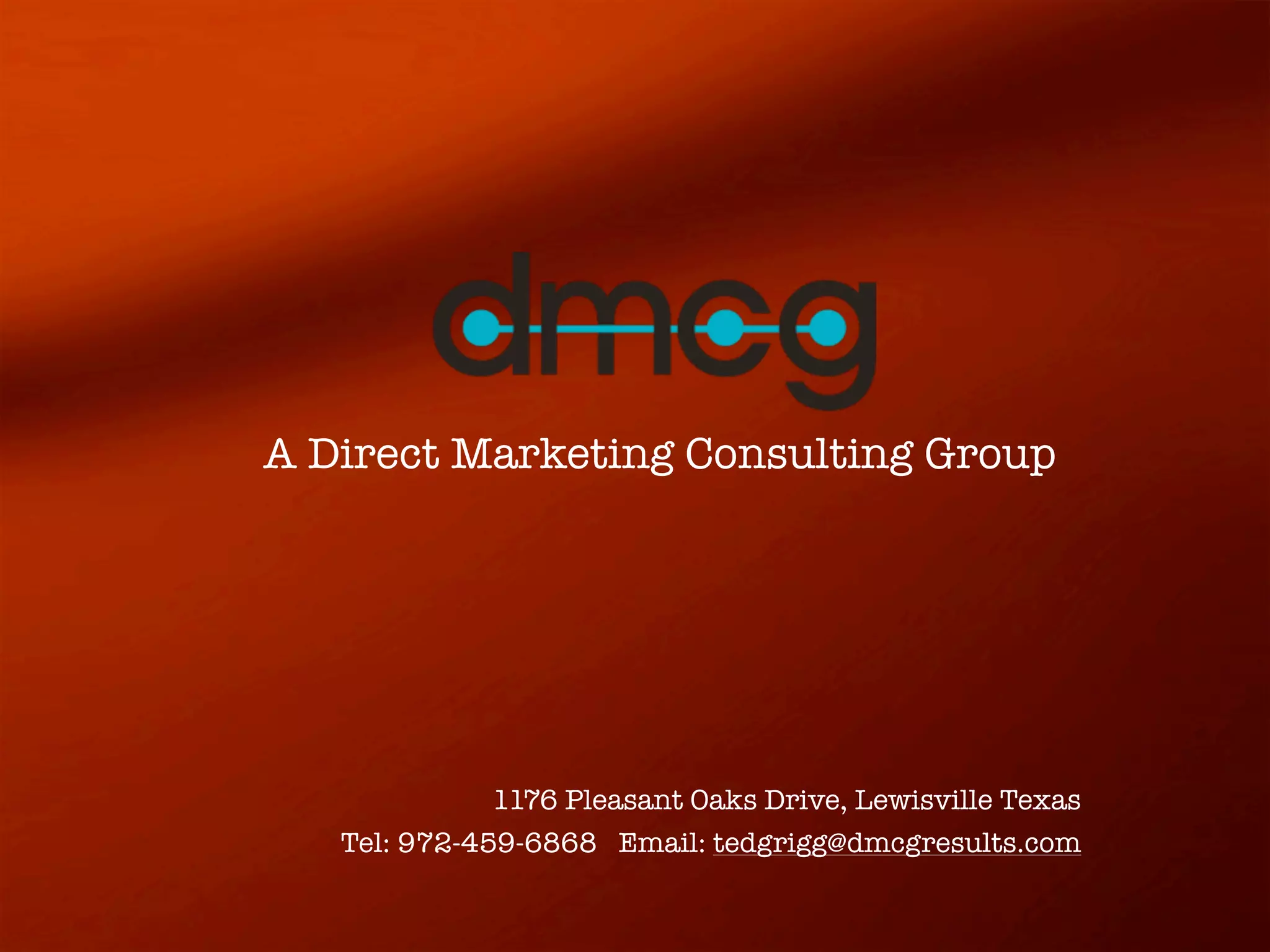 This document describes the services of A Direct Marketing Consulting Group. They offer direct marketing planning and implementation, objective consulting advice, creative development with strategic perspective, donor profiling, list hygiene and enhancement. The company founder has 20+ years of experience in direct marketing and has launched multiple direct marketing agencies. They emphasize testing, analytics, acquisition allowables, and creative approaches to drive response. Their services include program evaluation, creative development, audits, database expansion strategies, and email marketing strategies.