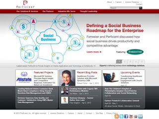 Perficient is an IT consulting firm that enhances client engagement through innovative technology solutions, particularly utilizing Sitecore CMS for digital marketing. The document outlines Perficient's goals for their website redesign, focusing on user engagement, and considerations for using Sitecore for content management. Their strategies have led to significant improvements in traffic, lead generation, and content relevance across digital platforms.