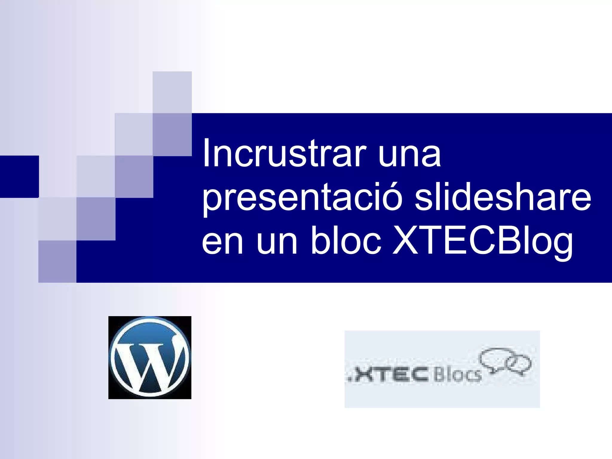 XTECBloc Afegeix oEdita article Pitja l’opció Edita de l’article a editar per afegir la presentació slideshare