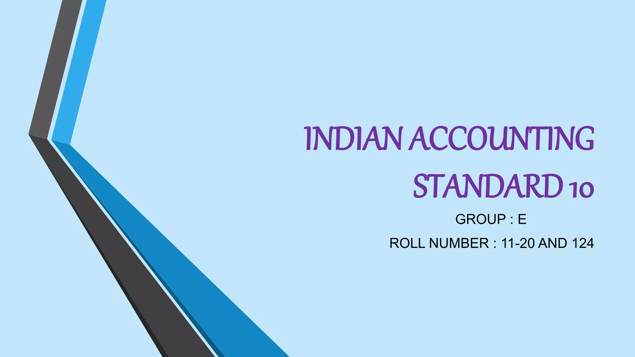 This document provides an overview of Indian Accounting Standard 10 (Ind AS 10) which deals with events after the reporting period. It defines key terms and outlines the accounting treatment and disclosure requirements for adjusting and non-adjusting events that occur after an entity's reporting period but before its financial statements are authorized for issue. The standard requires an entity to adjust amounts recognized in its financial statements for adjusting events and provide updated disclosures for certain non-adjusting events. It also addresses the assessment of an entity's ability to continue as a going concern if events after the reporting period indicate otherwise.