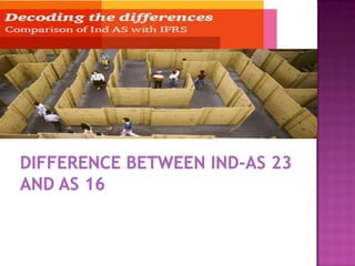 The document discusses the key aspects of accounting for borrowing costs as per Ind AS 23. It defines borrowing costs and qualifying assets. It covers the recognition, capitalization, suspension and cessation of capitalizing borrowing costs to qualifying assets. It also provides examples to illustrate the treatment of exchange differences and disclosures required.
