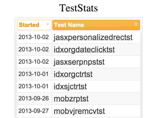 The document discusses Proctor, an open-source Java framework developed for managing A/B tests, aiming to provide efficient testing methodologies for web applications. It details the framework's architecture, including the design of experiments, selection of user groups, implementation of test behaviors, and logging results, emphasizing the importance of unbiased and independent sampling. Additionally, it covers advanced features like test segmentation, payload management, and cross-product coordination for comprehensive testing strategies across multiple environments.