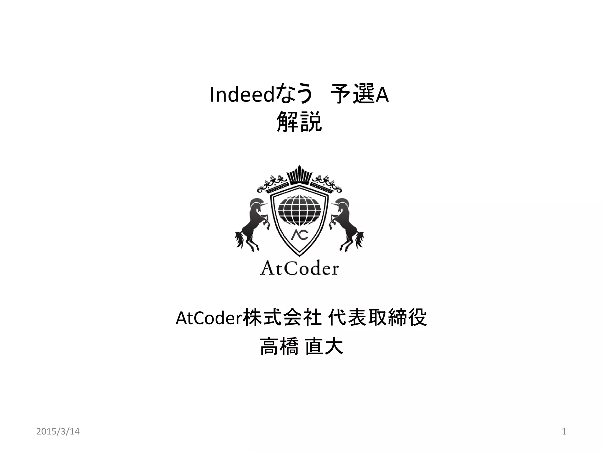 Indeedなう 予選A 解説 AtCoder株式会社 代表取締役 高橋