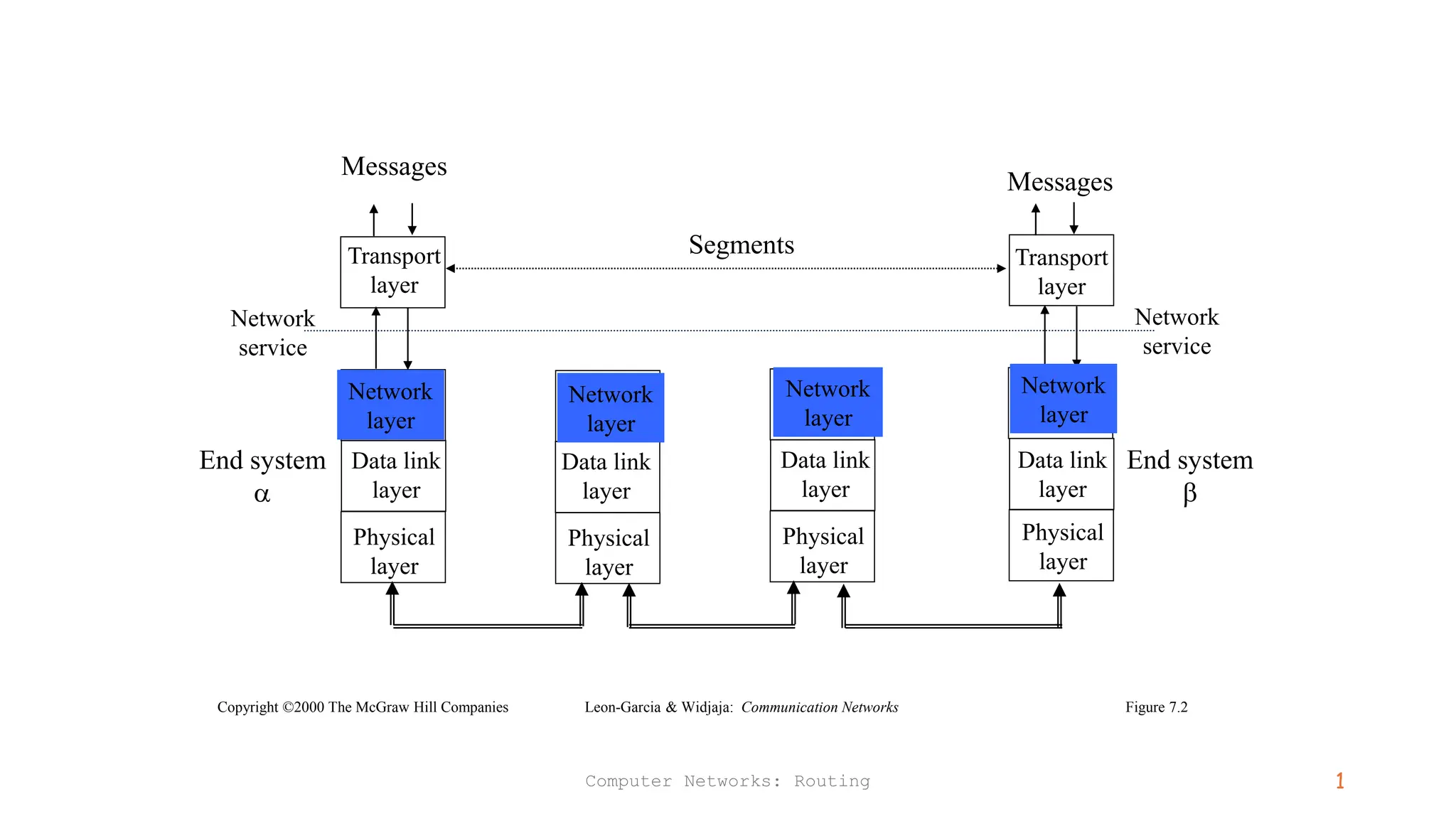 The document discusses the structure and design goals of computer networks with a focus on the network layer. It emphasizes the independence of network services from subnet topologies and the need for a uniform numbering plan. Additionally, it illustrates different network architectures and the interaction between various layers, including physical, data link, and transport layers.