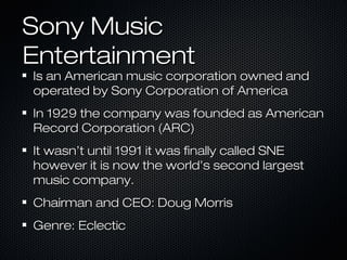 Sony Music Entertainment is a large American music corporation owned by Sony Corporation of America that was founded in 1929 and is now the second largest music company in the world. XL Recordings is a smaller independent British record label founded in 1989 that is known for releasing albums from artists like Adele, Dizzee Rascal, and Radiohead. While Sony Music Entertainment has more recognition due to its large size and popular artists, an independent label like XL Recordings may provide more individual attention to help an artist create an amazing album.