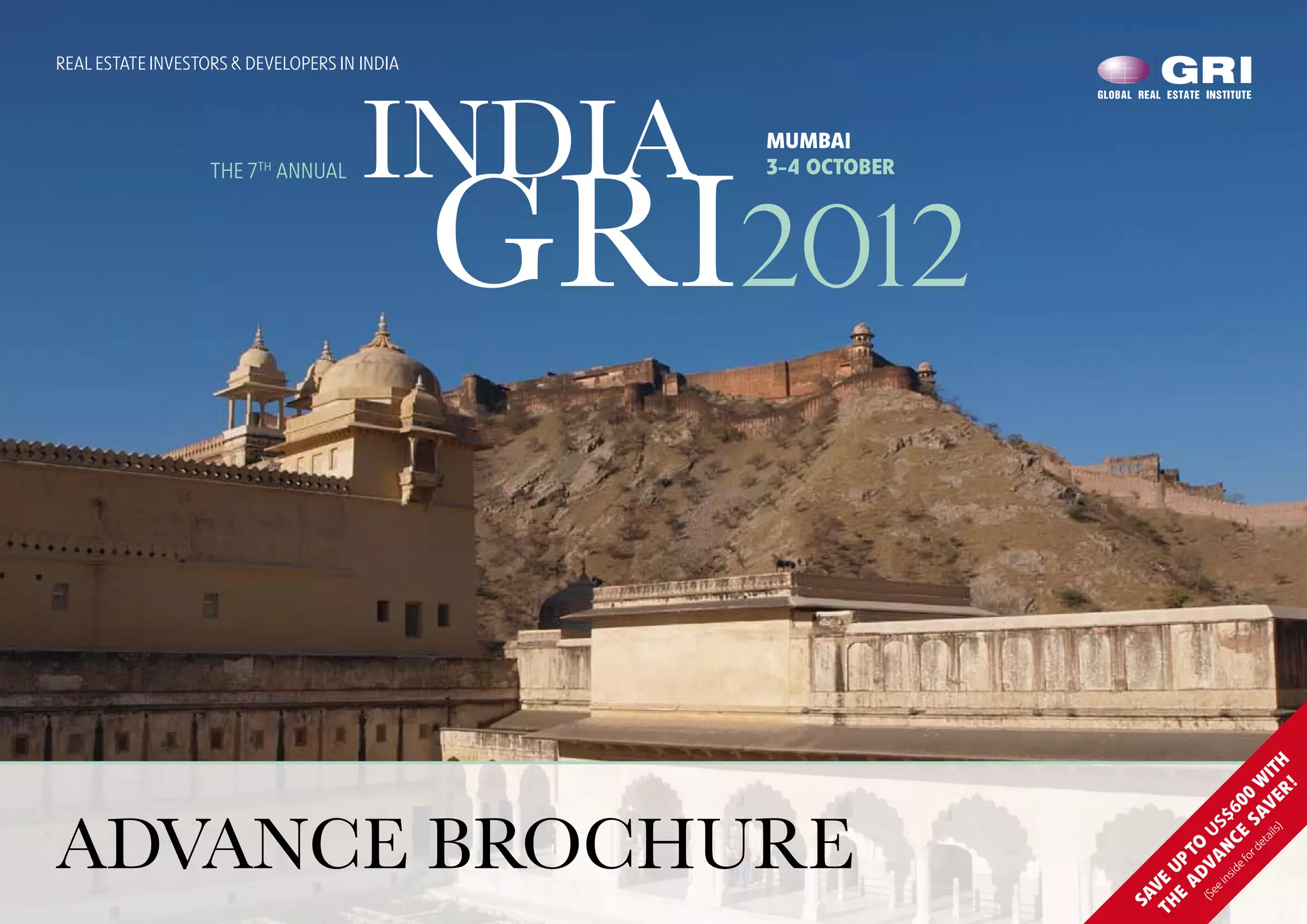 This document provides information about the 7th Annual India GRI conference on real estate investment in India, to be held in Mumbai on 3-4 October. Over 200 senior real estate professionals from major developers, investors, and financial institutions in India and globally are expected to attend and participate in discussions across all major asset classes. Senior industry leaders can apply to chair discussions at the event. Sponsorship opportunities are also available to companies seeking to promote their brand and connect with the elite audience of real estate professionals.