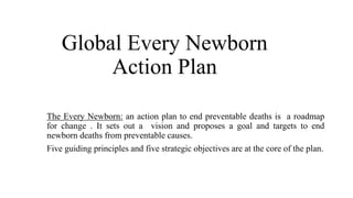 The document summarizes India's National Newborn Action Plan and Rewa District Newborn Action Plan. It provides statistics on neonatal, infant and under-5 mortality in India from 1990-2012, showing a 44-59% reduction. The Rewa District plan aims to reduce the neonatal mortality rate from 47 to under 10 per 1000 live births by focusing on interventions around labor/childbirth, newborn care, sick newborn care, and coordination across sectors like health, education and women/child development. Key commitments include training health workers, establishing developmental clinics, and implementing a community awareness campaign.