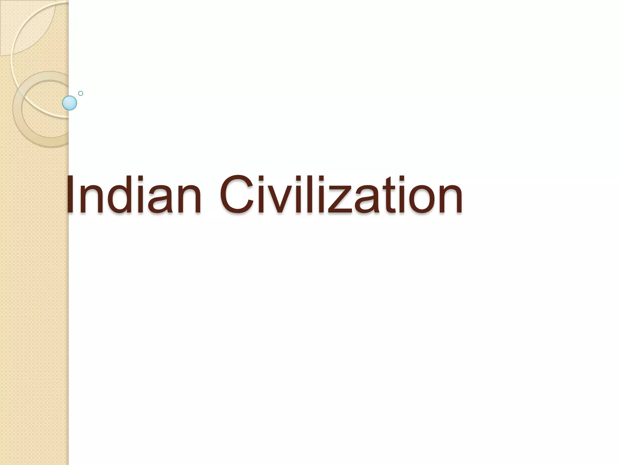 The document summarizes the history of Indian civilization from ancient times to the establishment of empires. It describes the Indus Valley civilization including the cities of Harappa and Mohenjo-Daro. The Aryans later invaded and their Vedic period saw the development of Sanskrit and the Vedas. Major empires included the Mauryan Empire under Ashoka, the Gupta Empire which was a period of cultural flourishing, and the Mughal Empire which ruled in the 16th century. Key contributions of Indian civilization included urban planning, major religions, mathematics, and architectural achievements.