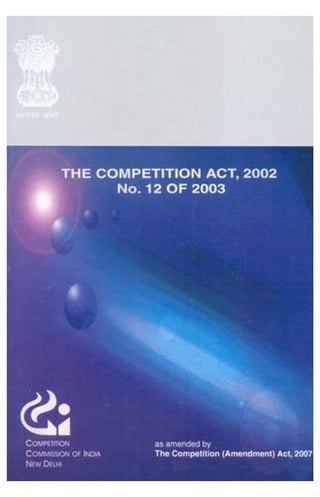 1) It establishes the Competition Commission of India to prevent anti-competitive practices, promote competition, protect consumer interests and ensure freedom of trade.