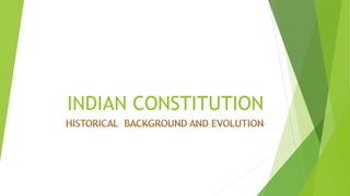 The Indian Constitution was framed by the Constituent Assembly between 1946 and 1949. Key events included the convening of the assembly in 1946 with Sachchidanand Sinha as interim president, the election of Dr. Rajendra Prasad as permanent president, and the passing of the Objectives Resolution in 1946 which established India as an independent sovereign republic. The assembly drew upon several foreign constitutions and domestic practices in developing India's governing framework, which came into force on January 26, 1950.