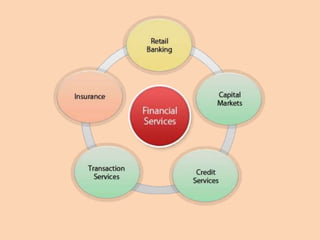The document outlines the structure and functions of the Indian financial system, defining finance and detailing various financial services and institutions. It covers key components such as money markets, capital markets, and various financial institutions, including banks, development banks, and non-banking financial companies (NBFCs). Additionally, it discusses specific programs and institutions aimed at enhancing industrial development, rural development, and promoting small-scale industries in India.