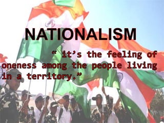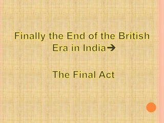 The document outlines the history of India's struggle for independence, starting from the revolt of 1857, through various movements led by key figures like Gandhi and Tilak, up to the Quit India Movement in 1942 that demanded British withdrawal. It highlights the evolution of Indian nationalism, key events like the Jallianwala Bagh massacre, and the formation of the Indian National Army, culminating in India gaining independence on August 15, 1947. The narrative emphasizes the role of communal unity and non-violent resistance in shaping India's fight for freedom.