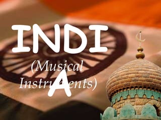 The document outlines various classifications and types of Indian musical instruments, categorizing them into stringed, wind, and percussion instruments. It provides detailed descriptions of specific instruments within each category, including their construction, playing technique, and cultural significance. Notable instruments mentioned include the sitar, sarod, harmonium, and tabla, highlighting their roles in classical and folk music traditions in India.
