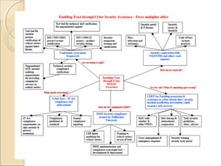 The document discusses the evolution of cybersecurity from an Indian perspective, emphasizing the growth of web technology and the shift towards next-generation networks (NGNs) that support diverse services on a unified platform. It highlights the increasing complexity of cyber threats, including organized crime, phishing, and malware attacks, while also addressing the need for comprehensive security measures and international collaboration to safeguard information assets. Furthermore, it outlines India's cybersecurity strategy, including regulatory compliance, skill development, and the implementation of international security standards like ISO 27001.