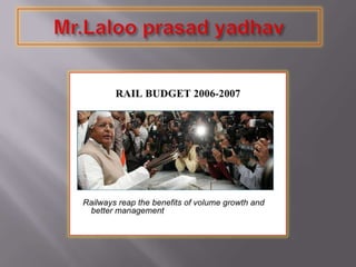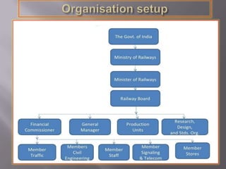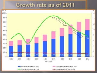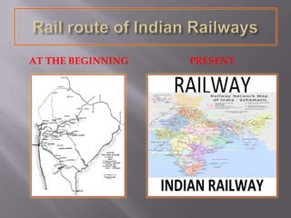 The document summarizes the history and development of Indian Railways from its inception in 1853 to modern times. Some key points:
