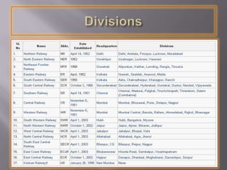 - At independence in 1947, India had 42 rail systems which were later nationalized into one unit.
