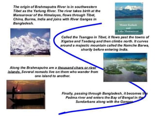 The document discusses the rivers of India, their classifications, and origins, emphasizing their ecological and economic significance to various stakeholders. It categorizes rivers into Himalayan and peninsular types and details seven major river systems, including the Ganga, Yamuna, Indus, and Brahmaputra, among others. Each river's unique characteristics, tributaries, and water flow patterns are described, highlighting their roles in the geography and culture of India.