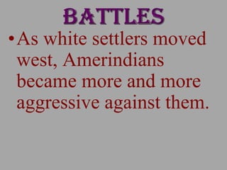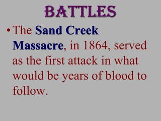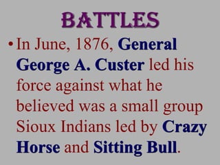 The document discusses historical perspectives on war and peace, citing Thomas Jefferson's view on war and Martin Luther King Jr.'s advocacy for nonviolence. It highlights the defeat of Custer at the Battle of Little Bighorn and the struggles of the Nez Perce tribe led by Chief Joseph, who sought to avoid conflict with white settlers but ultimately faced violence and loss. Additionally, it mentions the 1887 legislation aimed at the assimilation of Native Americans into dominant society.