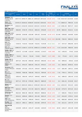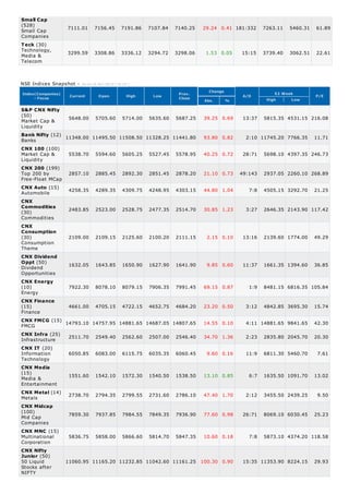 The document provides a snapshot of various Indian stock market indices as of 16 October 2012. It lists the current and previous day's closing levels, as well as the 52-week highs and lows, for major indices such as the SENSEX, Nifty 50, Bank Nifty and sectoral indices. Most indices saw gains of around 0.5-1% for the day. The SENSEX closed at 18,577.70 points, up 0.73% from the previous close.