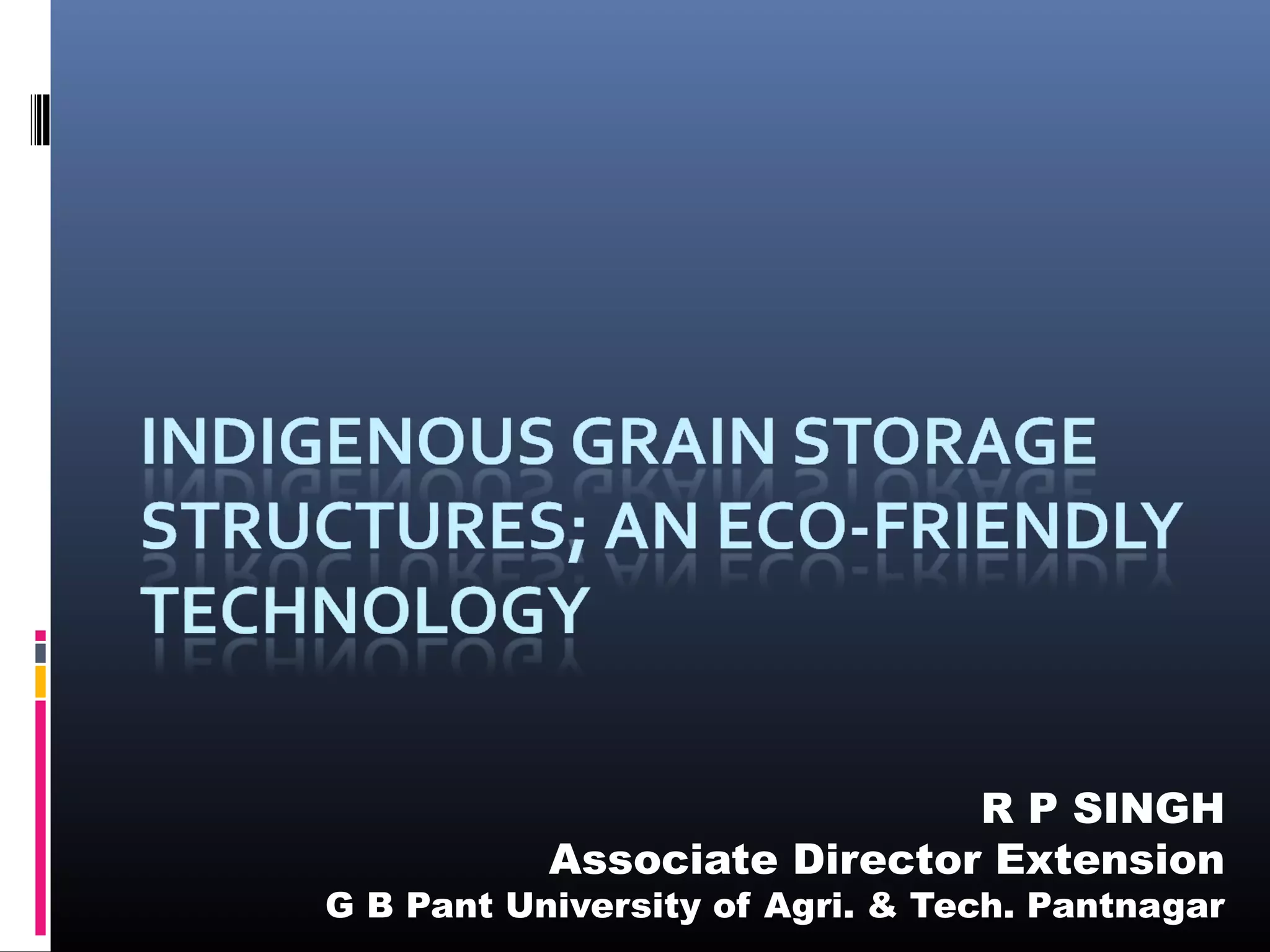 The document discusses India's record wheat and rice production and the government's storage issues. It then summarizes various traditional wooden, mud, bamboo, and pot-based grain storage structures used in different parts of India. These indigenous structures provide benefits like pest resistance but have limitations for long-term storage. The document concludes there is a need to improve traditional structures with scientific inputs and develop new region-specific designs to help reduce India's substantial post-harvest food grain losses.
