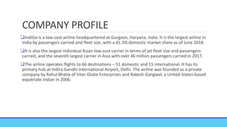 Indigo Airlines has strong brand awareness and a positive brand image in India. A survey was conducted to analyze customer perceptions of the Indigo Airlines brand. Key findings included that over 70% of respondents recognized the Indigo brand image and logo. Affordability was the strongest brand association. Over 75% of respondents said they would recommend Indigo to others due to its convenience and affordable prices. The majority of customers were satisfied with Indigo's service given its prices. In conclusion, Indigo has high customer loyalty and brand resonance due to its reliability and affordable fares.