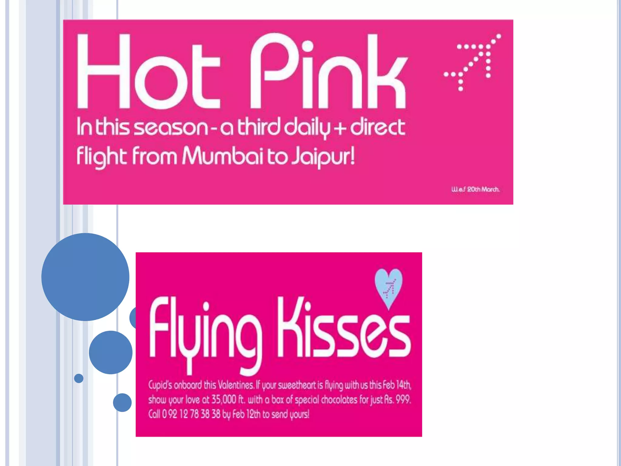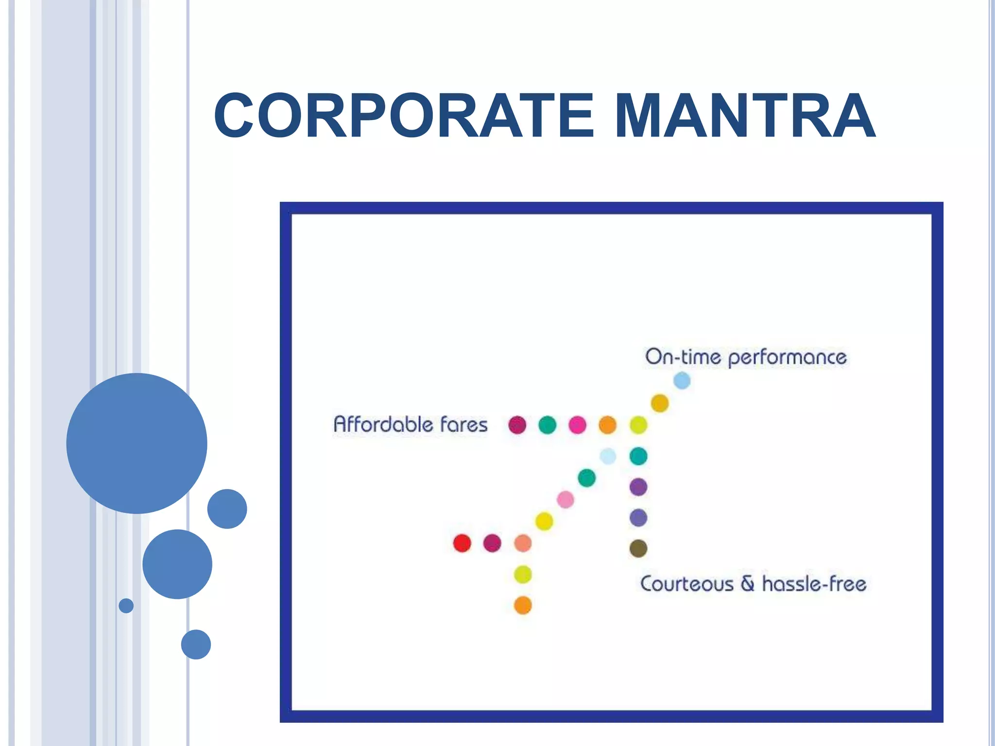 The document discusses various aspects of airline operations including corporate strategy, products and services, people, promotion, competitors, service highlights, security procedures, packaging innovations, and suggestions for expanding air cargo services, chartered flights, and crew uniforms. It covers topics such as the company's focus on on-time performance, Indian mascot, air sickness bags, USB drives with disclaimers, and untapped markets for freight and chartered services.