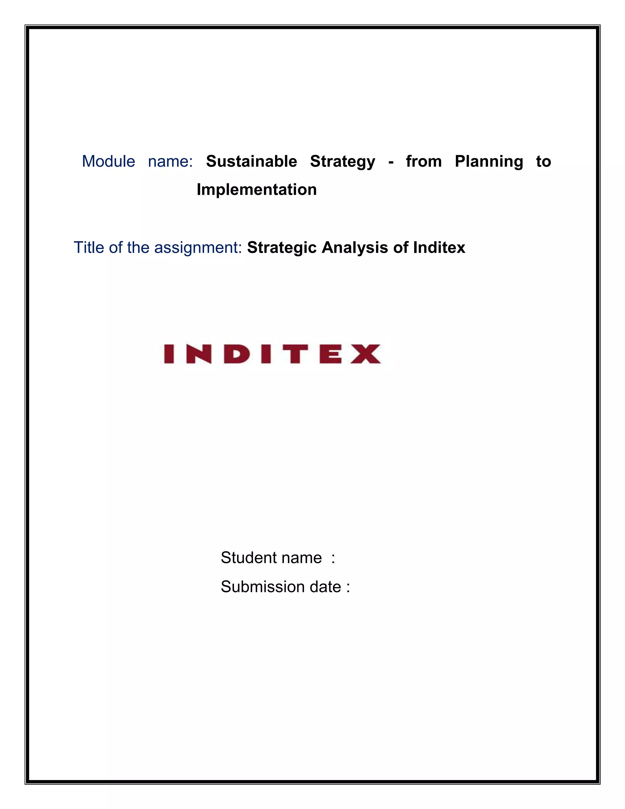 The document provides a strategic analysis of Inditex, a large fashion retail group. It analyzes Inditex's strategic position using PESTLE, Porter's five forces, and SWOT analyses. It then examines Inditex's strategic directions using the BCG matrix and Ansoff's growth matrix. Finally, it evaluates the suitability, acceptability, feasibility, and sustainability of Inditex's strategy and provides conclusions and recommendations.